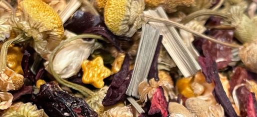 sparkly bright on a chilly night, tree light twinkle loose leaf tea is a blend of calming chamomile, lemon grass, dried cranberries, a touch of peppermint leaf and a sprinkling of shimmering stars to brighten this seasonal brew. Calm and cozy for a morning or evening indulgence.